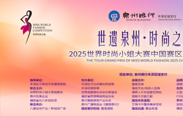 当千年世遗古城邂逅国际时尚浪潮,一场文化与美学的碰撞在泉州璀璨绽放。2025年世界时尚小姐大赛中国巡回赛·泉州站于6月3日-4日盛大举办,黄金酒业股份有限公司凭借醇厚绵柔的卓越酒质,荣膺赛事「指定白酒品牌」,...